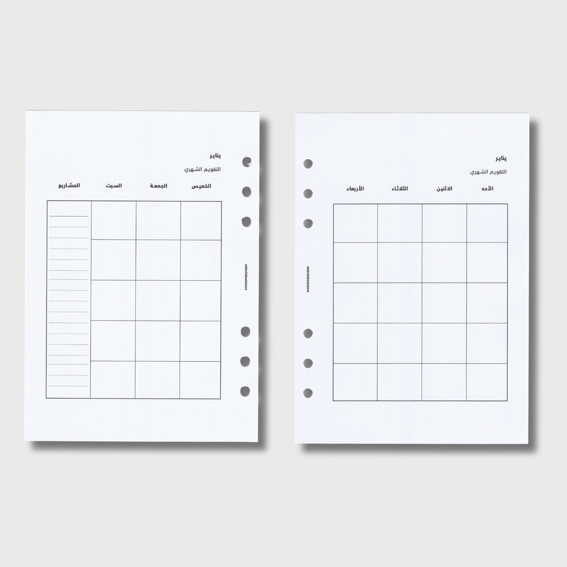 - رزمة التقويم الشهري غير المؤرخة من 24 ورقة، ورقتان متقابلتان لكل شهر